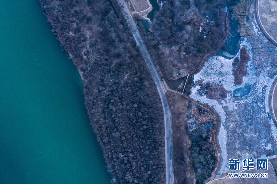 這是12月16日拍攝的位于青海省貴德縣境內的黃河(無人機照片)。