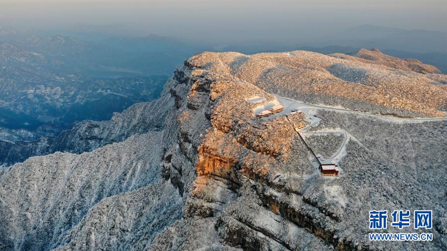 12月20日拍攝的朝霞中的龍頭山景區(qū)(無人機照片)。