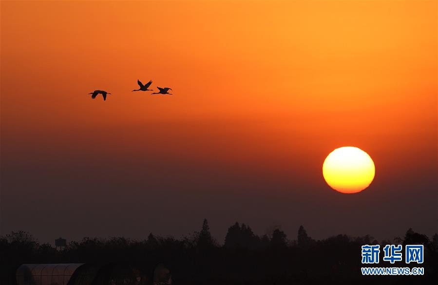 12月21日,幾只白鶴在南昌五星白鶴保護小區上空飛翔。 冬日,江西南昌五星白鶴保護小區成為白鶴等候鳥的越冬樂園。鳥兒在保護小區飛翔、覓食,讓保護小區熱鬧起來,成為鄱陽湖區一道特別的風景。 新華社記者 萬象 攝