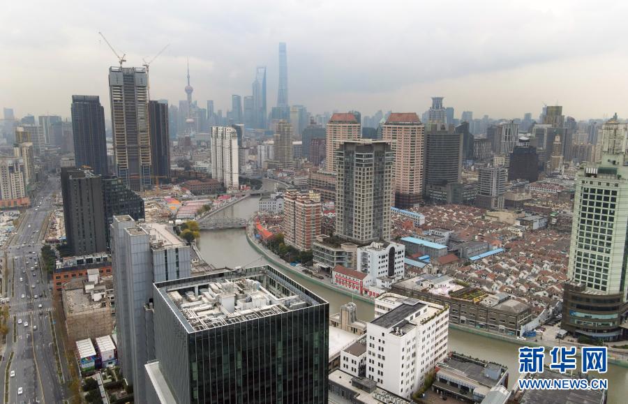 12月29日,從空中俯瞰蘇州河從城市樓群中穿過(無人機照片)。新華社記者 方喆 攝