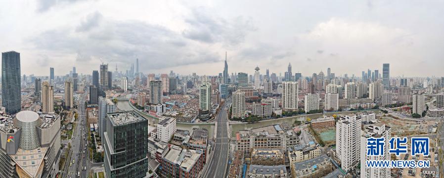 12月29日,從空中俯瞰蘇州河從城市樓群中穿過(無人機全景照片)。新華社記者 方喆 攝