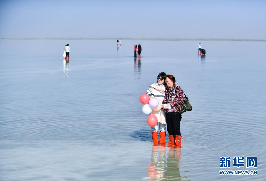游客在茶卡鹽湖“天空之鏡”景區游玩(9月23日攝)。