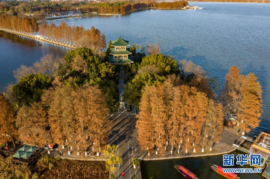 12月30日拍攝的武漢東湖行吟閣風(fēng)光(無人機(jī)照片)。