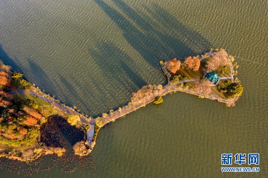 12月30日拍攝的武漢東湖“老鼠尾”風光(無人機照片)。