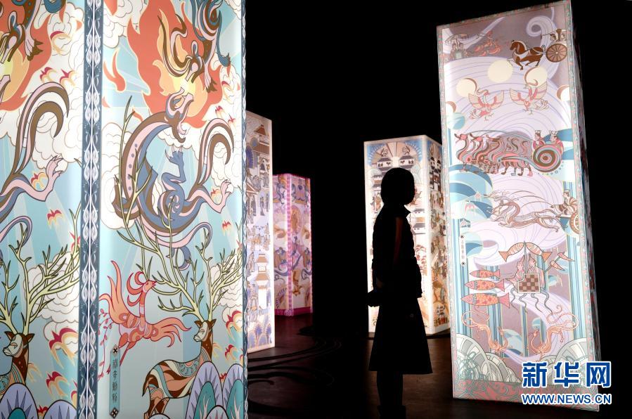 2021年1月3日,參觀者觀看漢風(fēng)美學(xué)新媒體藝術(shù)展。