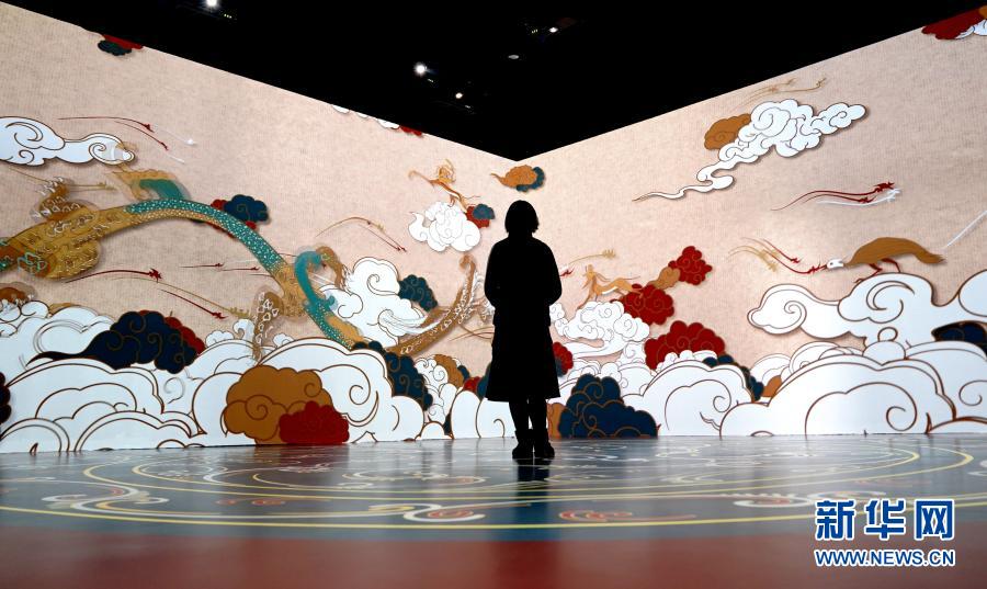 2021年1月3日,參觀者觀看漢風美學新媒體藝術展。