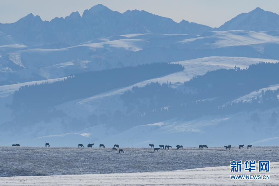 寒冬時節,位于新疆西北部的伊犁河谷一片銀裝素裹,連綿起伏的群山與天空相連,冰封的湖面、廣袤的雪原、奔馳的駿馬等構成一幅幅美麗的畫卷。新華社記者 丁磊 攝