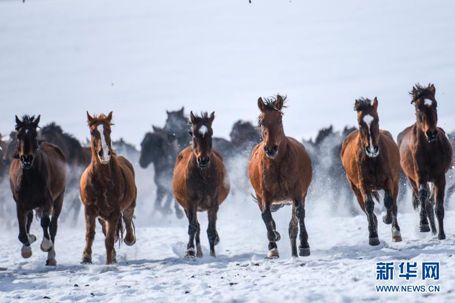 這是在新疆伊犁哈薩克自治州昭蘇縣天馬旅游文化園拍攝的馳騁的駿馬(2020年12月26日攝)。
