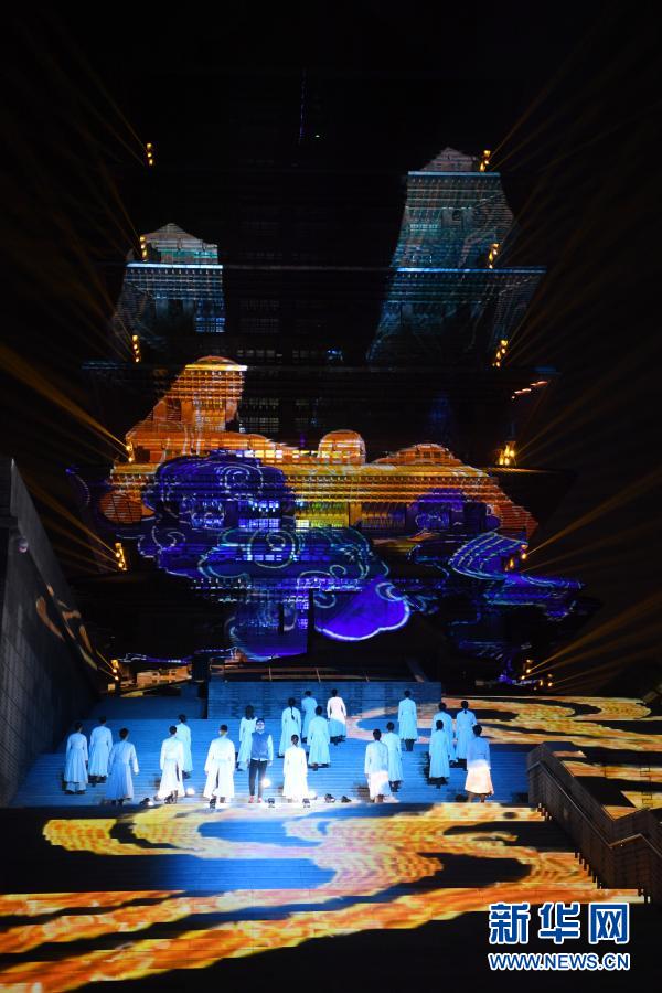 這是1月3日在蘭州黃河樓景區拍攝的《大有蘭州》光影秀。新華社記者 范培珅 攝