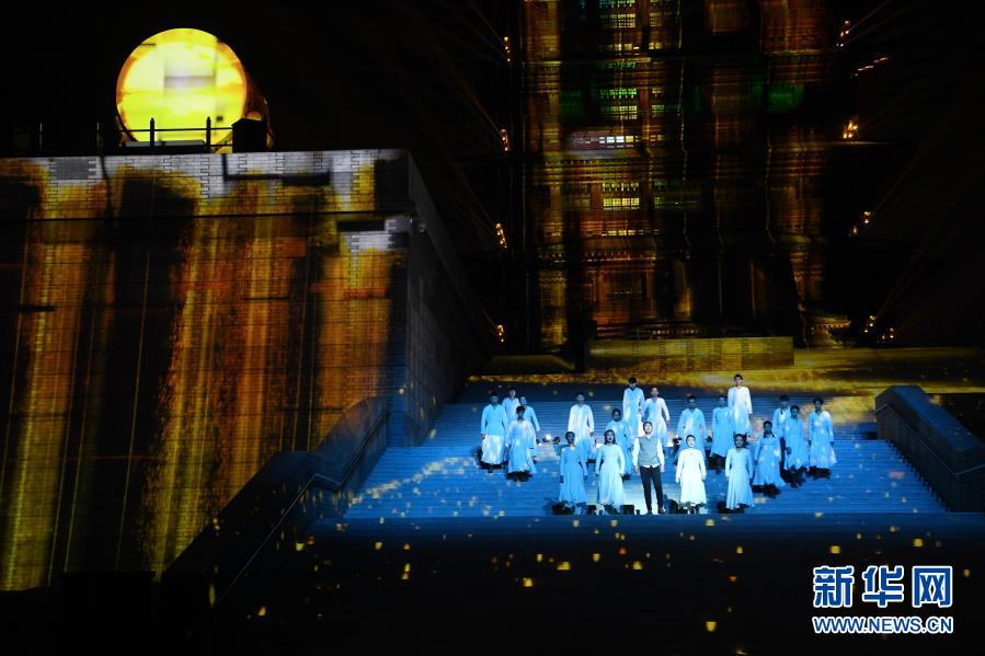這是1月3日在蘭州黃河樓景區拍攝的《大有蘭州》光影秀。新華社記者 范培珅 攝