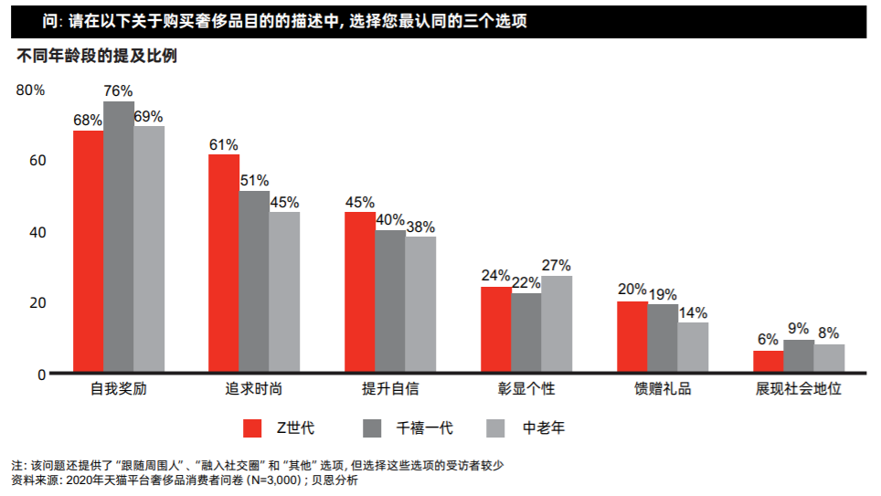 值得注意的是,報告顯示,2020年1月到10月,出生于1995年以后的“Z世代”對奢侈品聯名款和限量款的消費額同比增長了300%至400%。“自我獎勵”和“追求時尚”是他們購買奢侈品的主因,同時他們也更偏愛小眾設計款和聯名款。 業內人士表示,只追求性價比已經無法打動年輕消費者,能給消費者帶來快樂體驗的“美好消費”才是爭奪年輕消費者的新賽道。(記者:張千千) |