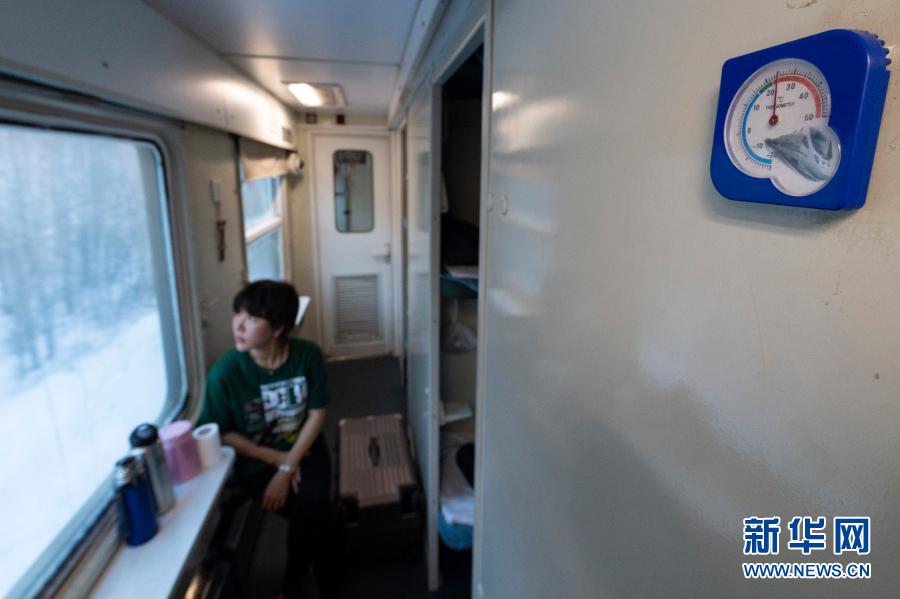 2021年1月7日,在K7039次列車上,旅客在20多攝氏度的車廂內看窗外的雪景。新華社記者 謝劍飛 攝