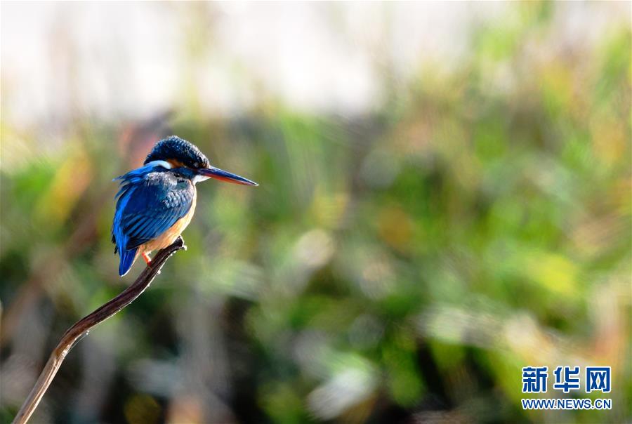 這是1月9日在石獅環灣濕地公園拍攝的翠鳥。 近日,大批前來越冬的水禽鳥類飛抵福建泉州石獅環灣濕地公園。 新華社記者 魏培全 攝