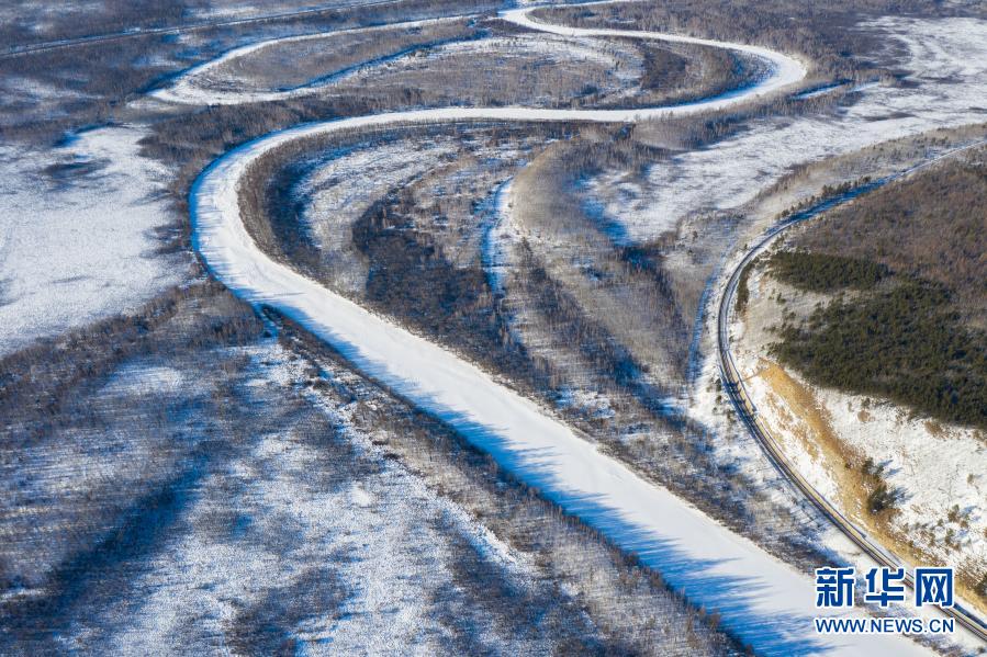 寒冬時節,位于“神州北極”黑龍江省漠河市的九曲十八灣風景區銀裝素裹,冰凍的額木爾河像大地上一條蜿蜒的白絲帶,林海雪原展開一幅壯美畫卷。