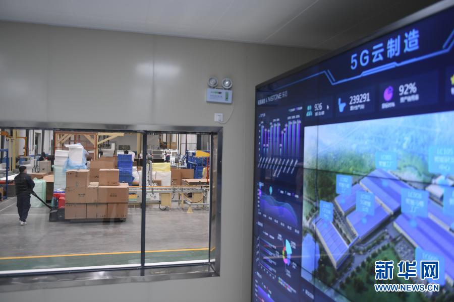 這是福建省首家5G智慧陶瓷工廠——九牧永春智慧制造產業園區101#智慧工廠的5G云制造監控中心(1月13日攝)。新華社記者 宋為偉 攝