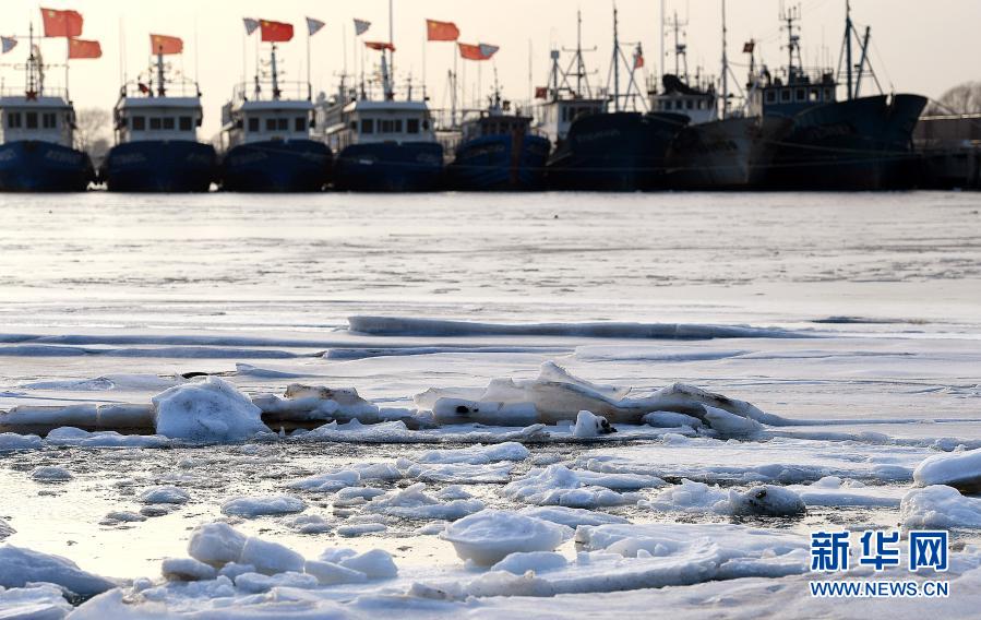 受近日冷空氣影響,渤海灣天津海域出現海冰“集結”,濱海新區大神堂、中心漁港等碼頭生成了固定海冰。