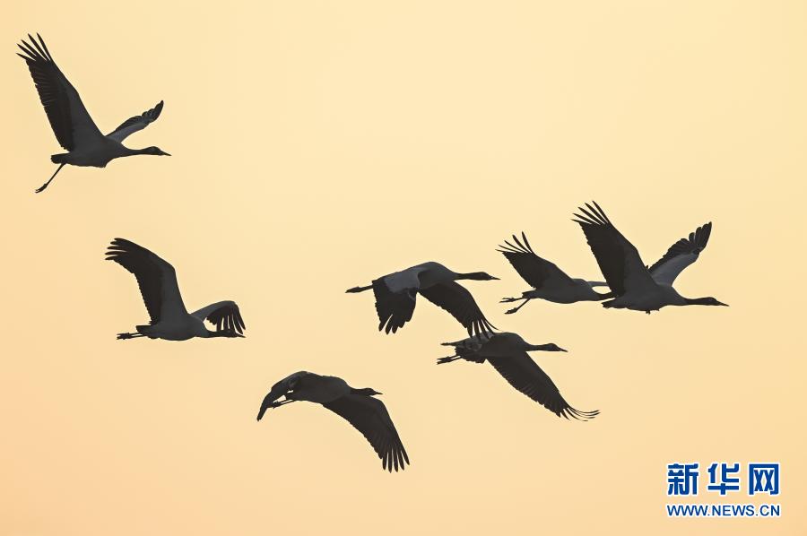 近日,位于貴州省畢節市威寧彝族回族苗族自治縣的草海國家級自然保護區迎來候鳥越冬高峰。國家一級保護鳥類黑頸鶴在晨光中翩翩起舞,給冬日里的草海增添了生機。