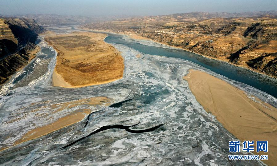 連續多日的寒潮低溫,使流經陜西省榆林市佳縣的黃河形成冰凌,風景獨特。