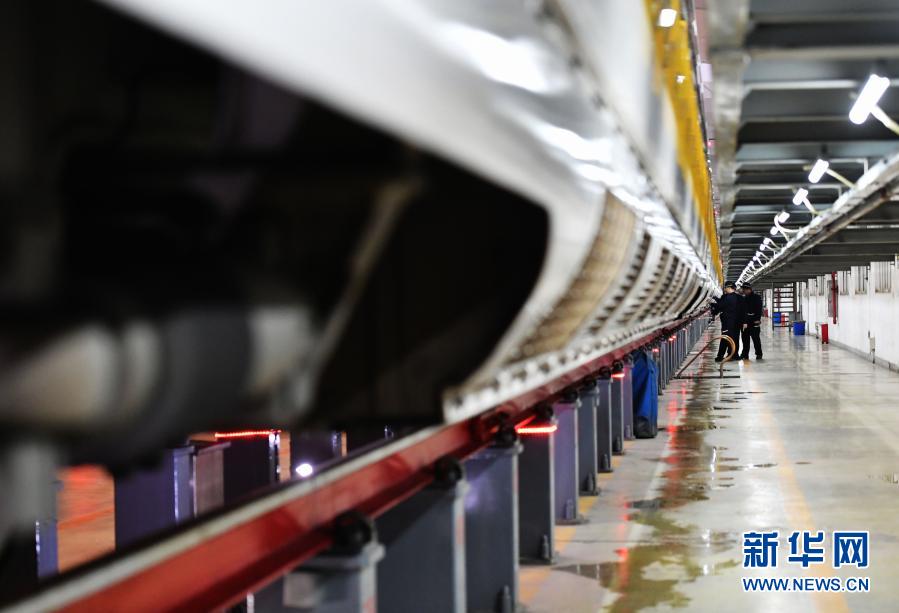 1月27日,在福州南動車所,工作人員在對動車進行檢查。