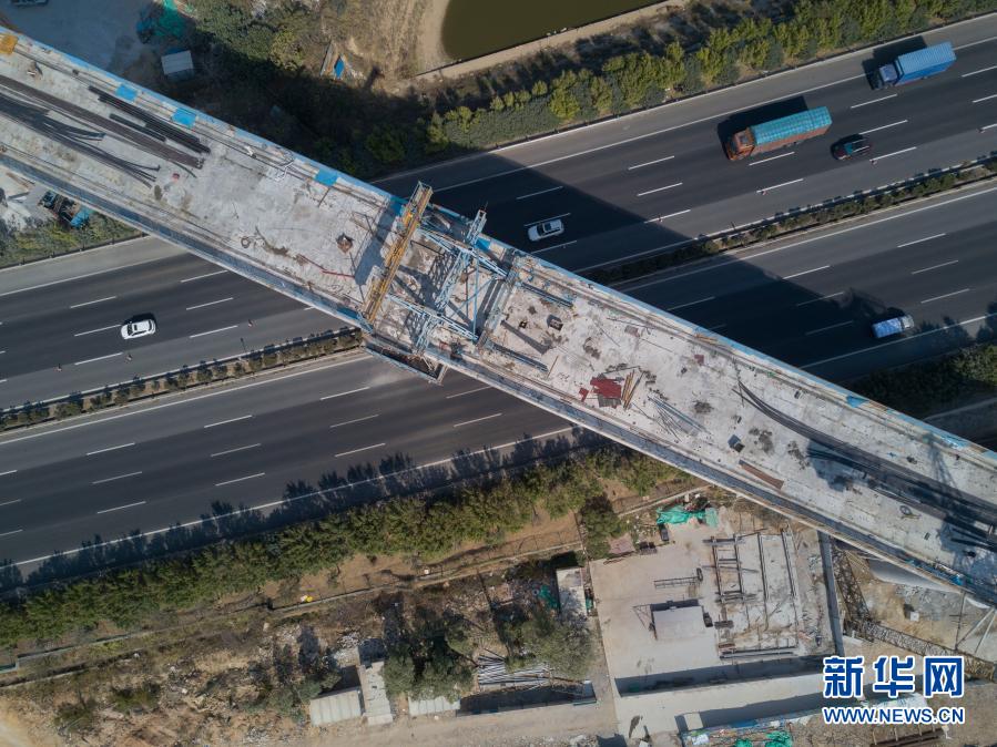這是位于福建省廈門市的新建福廈鐵路西溪特大橋跨沈海高速連續梁(2月3日攝,無人機照片)。