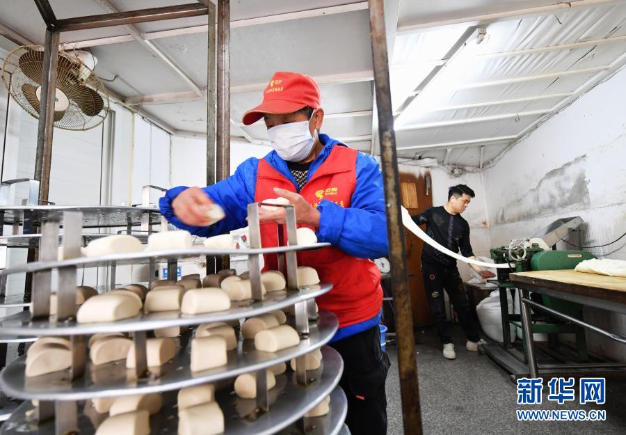永恒陽光饅頭店老板阿峰(右)和志愿者鄭先貴在制作饅頭。新華社記者魏培全攝