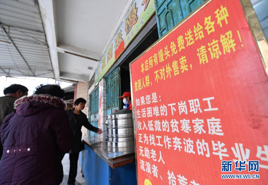 3月3日,石獅永恒陽光饅頭店在免費發放饅頭。新華社記者魏培全攝