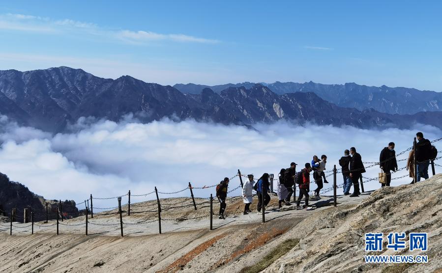 3月9日,游人在華山西峰游覽。新華社記者陶明攝
