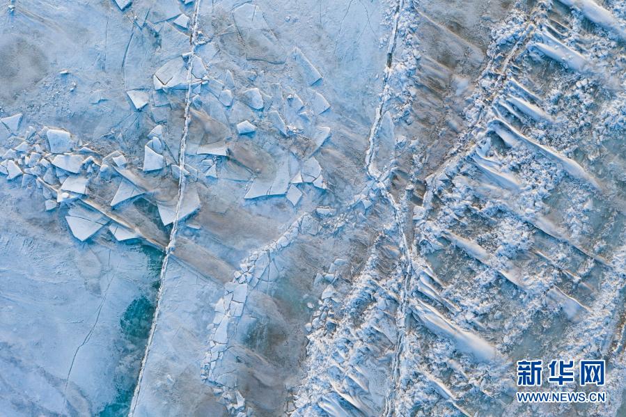 3月13日拍攝的封凍的興凱湖湖面(無人機照片)。