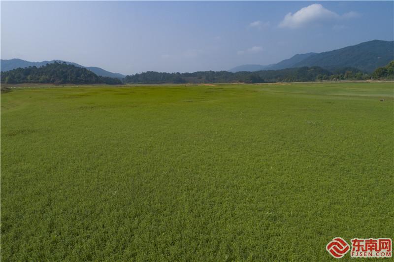 春天,九龍湖草場,綠草如茵 獨特的地理環境,造就了九龍湖草場獨特的自然景觀。 清流九龍湖,一年四季生態環境優美,春季因湖水退落,露出草床,長出綿延數里的絨草,走進草場,放眼望去,連綿起伏的群山,仿佛披上一層翠綠的絨被,溫馨而飄逸;夏季,碧水無波、一望無際;秋季,絨草連天、滿目金黃;冬季,晶瑩剔透、銀光璀璨。