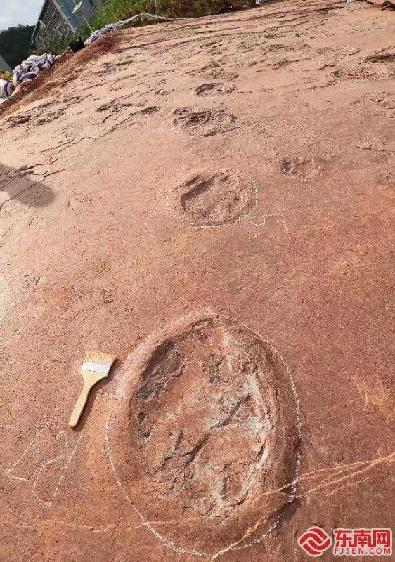 密集的恐龍足跡化石 福建日報通訊員 林斯乾 攝 東南網(wǎng)4月13日訊(福建日報記者 張杰 通訊員 林斯乾 楊國鑫) 9日,記者從上杭縣有關(guān)部門了解到,繼去年11月在該縣龍翔村首次發(fā)現(xiàn)白堊紀(jì)晚期恐龍足跡群化石后,科考團(tuán)隊又發(fā)現(xiàn)了大量同時期恐龍足跡化石。 據(jù)中國地質(zhì)大學(xué)(北京)博士生導(dǎo)師邢立達(dá)介紹,本次恐龍科考是去年科考工作的拓展,由中國地質(zhì)大學(xué)(北京)和福建省地質(zhì)調(diào)查研究院團(tuán)隊經(jīng)過近1周的清理工作,新增發(fā)現(xiàn)恐龍足跡化石約364枚,加上去年11月首次發(fā)現(xiàn)的240多枚恐龍足跡化石,已在上杭龍翔村清理發(fā)現(xiàn)600多枚恐龍足跡化石。 邢立達(dá)介紹,隨著清理工作繼續(xù)拓展,上杭發(fā)現(xiàn)的恐龍足跡化石有望超過1000枚。如此密集的恐龍足跡群化石,在國內(nèi)十分罕見。在一處約100平方米范圍的清理現(xiàn)場,集中了200余枚恐龍足跡化石。據(jù)介紹,這個區(qū)域恐龍足跡非常多,有可能是晚白堊世恐龍日常活動的一個通道。這個現(xiàn)象被恐龍足跡學(xué)界形象地稱為“恐龍舞池”。 本次考察中還新發(fā)現(xiàn)了體型更大的蜥腳類恐龍足跡。邢立達(dá)介紹,這是一種長脖子、長尾巴吃植物的大型恐龍,身長可以達(dá)到20余米。而在新發(fā)現(xiàn)的恐龍足跡化石中,小的不足10厘米,屬小型鳥腳類恐龍足跡,這類恐龍復(fù)原之后,體長大約1米左右。 去年11月,科考團(tuán)隊在上杭龍翔村首次發(fā)現(xiàn)恐龍足跡化石,經(jīng)自然資源部國家古生物化石專家委員會相關(guān)專家實地考察認(rèn)定,這一恐龍足跡群化石是中國目前發(fā)現(xiàn)的面積最大、多樣性最高的晚白堊世恐龍足跡群,也是國內(nèi)首次發(fā)現(xiàn)大型恐爪龍類行跡,該發(fā)現(xiàn)對于研究閩西地區(qū)晚白堊世時期的古環(huán)境、古地理、古生態(tài)以及全球白堊紀(jì)晚期恐龍動物群的分布和演化具有重大意義。 雨季即將來臨,邢立達(dá)表示,本次搶救性清理工作后,科考團(tuán)隊將會在恐龍足跡群化石表面做一些必要的保護(hù)工作,使得在永固性建筑物建立起來之前,這些足跡得到妥善的保護(hù)。 |