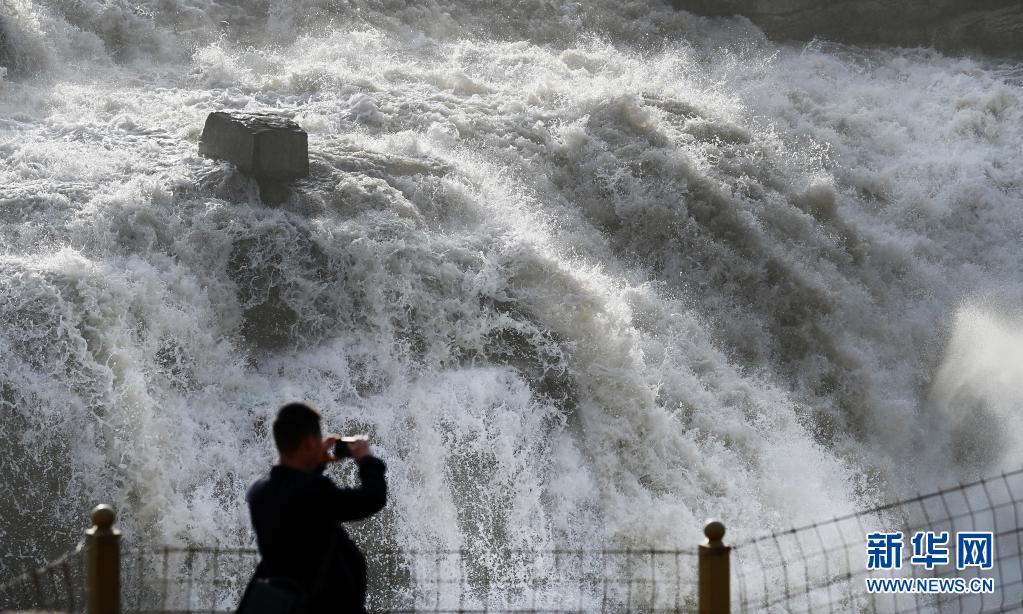 近日,隨著黃河上游冰凌消融,位于秦晉峽谷的黃河壺口瀑布水量增大。游人紛紛前來觀看“一里壺口十里雷,春水騰霧浪滔天”的壯觀景象。
