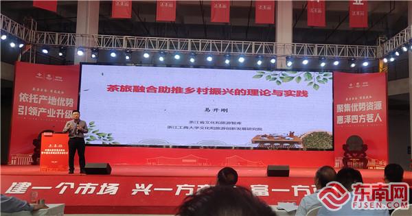 浙江工商大學教授易開剛作題為《茶旅融合助推鄉村振興的理論與實踐》的專題報告 尹祎主持主旨發言環節。孫忠煥、楊江帆、楊秀芳、易開剛分別作題為《凝心聚力 繼續做好茶的文章》《打造中國白茶產業發展之星——政和白茶產業優勢與發展路徑探尋》《科技賦能縣域茶產業高質量發展》《茶旅融合助推鄉村振興的理論與實踐》的專題報告,詮釋了茶文化、茶產業、茶科技、茶旅融合等方面內容,解讀了政和白茶的品質特征以及立足品種與生態優勢、政和差異化優勢、中國白茶城獨特優勢、綜合后發優勢等方面打造政和白茶高質量發展的路徑,并以生動鮮活的三產融合成功案例,為鄉村振興指明了方向。