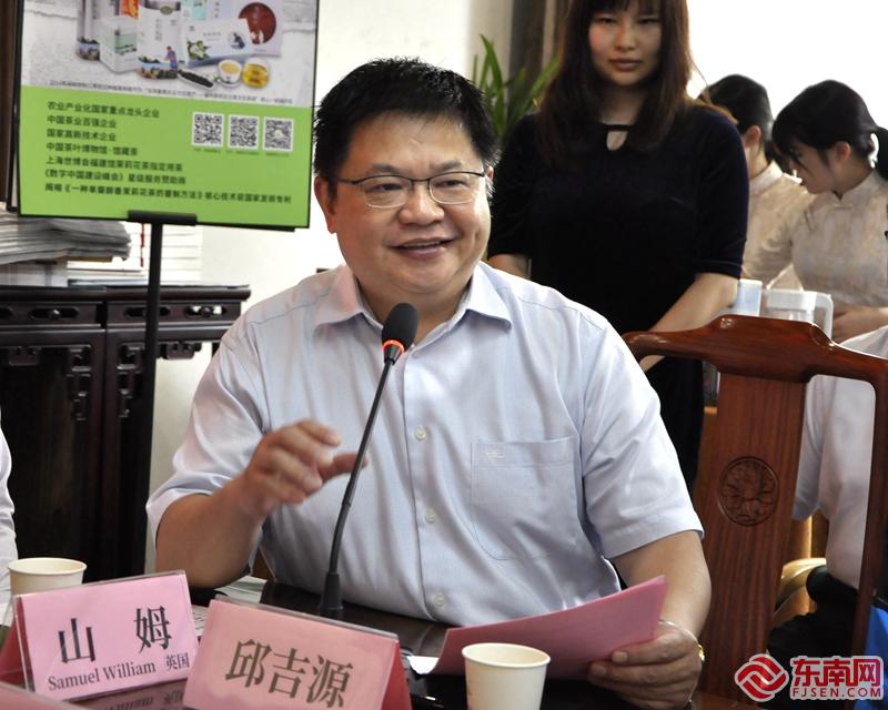 “國際茶日”座談會現場。吳隆重 攝 座談會由福建日報社主辦,東南網承辦,致公黨福建省委會、海峽兩岸茶業交流協會、福建省茶葉學會、福州西湖國際學校、福州外國語學校等單位支持,福建華僑主題館協辦。 福建省政協原副主席、海峽兩岸茶業交流協會會長陳紹軍,省委宣傳部二級巡視員卓少鋒,省人大農業和農村委員會副主任謝小平,省政協農業和農村委員會副主任張麗娟,福建日報社副總編輯潘賢強,省僑聯副主席張瑤等出席了座談會。 福建省外辦、福建省供銷社、福建省農科院等有關單位負責人,以及來自美國、加拿大、英國、愛爾蘭、法國、德國、西班牙、俄羅斯、澳大利亞、日本、烏克蘭、緬甸等10多個國家的在閩國際友人和海外華僑華人參加了活動。