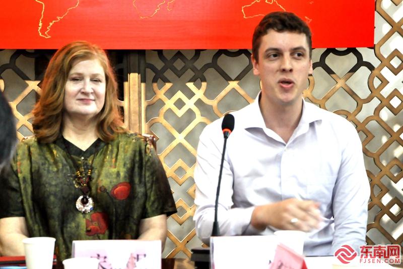 國際友人宋杰妮 (Jeanne J.Sobo)、山姆(Samuel William)點贊福建茶。 吳隆重 攝