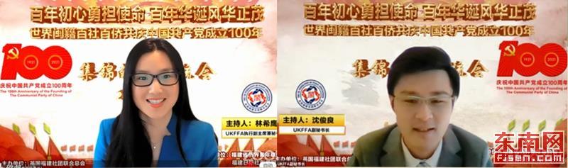 英國福建社團聯合總會執行副主席兼秘書長林希鷹、副秘書長沈俊良在線主持了分享活動。吳隆重制圖 |