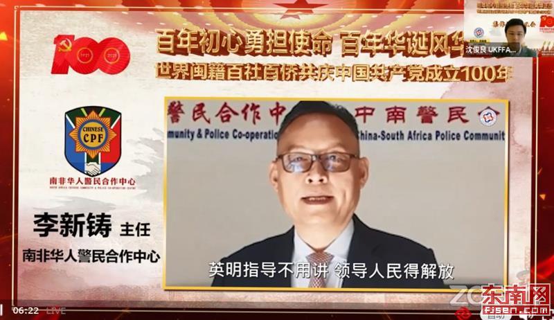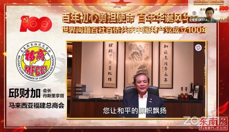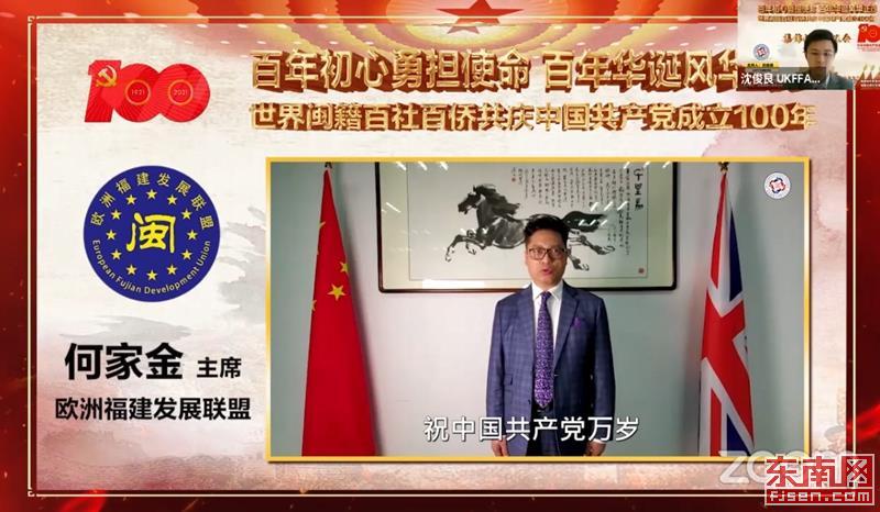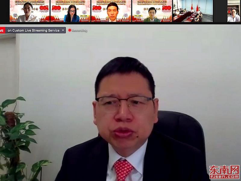 東南網6月30日訊(本網記者 吳隆重)6月29日下午,由英國福建社團聯合總會主辦,福建省僑界青年聯合會、福建日報社東南網海外部為支持單位的世界閩籍百社百僑共慶中國共產黨成立100周年線上交流會成功舉行。東南網對活動進行全程直播,超過638.9萬人次同時在線收看。 中國駐英國大使館公參兼總領事童學軍,中國僑聯兼職副主席、福建省僑聯主席陳式海,福建省海外聯誼會副會長鄭惠文,中國國際文化傳播中心執行主席龍宇翔,英國福建社團聯合總會主席李光喜等出席視頻連線活動并致辭。 當天的視頻會議還邀請了世界各地閩籍僑領參加,南非華人警民合作中心主任李新鑄,歐洲福建發展聯盟主席何家金,美國福建華人聯合會主席李華,馬來西亞福建總商會總會長、丹斯里拿督邱財加,福建省僑界青年聯合會會長邱建益在線發言,歐洲華僑華人社團聯合會主席曹燕靈、福建海外杰出女性聯誼會會長李然發送視頻分享心得。 現場播放了回顧中國共產黨光輝歷程的影視作品,分享了來自世界80多個國家和地區的百名閩籍僑領的祝福視頻,展示了廣大海外僑胞對祖國的深厚感情和對中國共產黨成立100周年的真誠祝賀。
