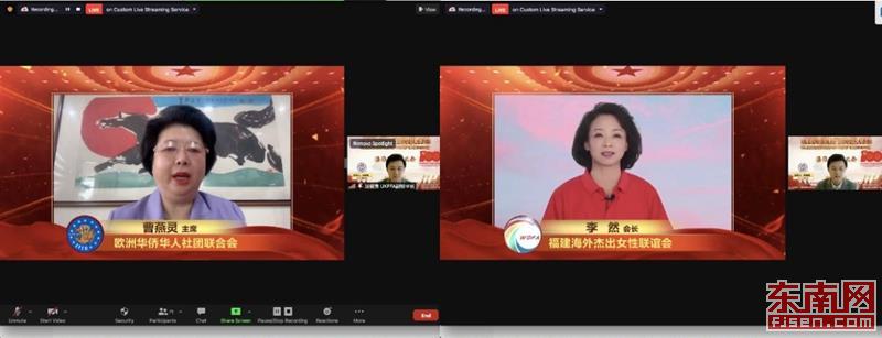 歐洲華僑華人社團聯合會主席曹燕靈、福建海外杰出女性聯誼會會長李然分享祝福視頻。英國福建社團聯合總會 供圖