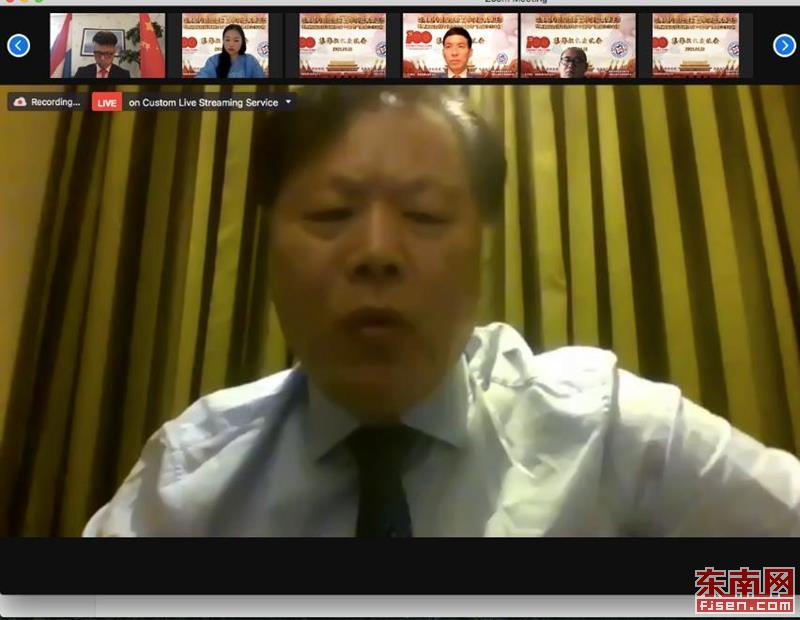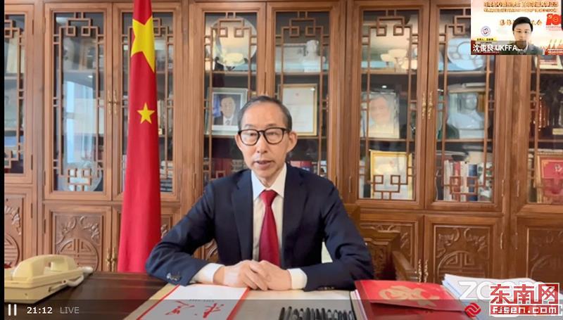 中國僑聯兼職副主席、福建省僑聯主席陳式海致辭。英國福建社團聯合總會 供圖 陳式海在致辭中表示,在慶祝中國共產黨成立100周年這個重要的歷史時刻,閩籍僑界自發組織視頻慶祝分享活動,這是海外僑胞對祖國的誠摯熱愛,彰顯了海外僑胞的赤子情懷。他說,旅居海外的閩籍華人華僑人數眾多、實力雄厚,社會影響力大,是福建發展的一大資源、力量和優勢,也是促進經貿合作、傳播中華文化、搭建友誼合作橋梁的重要力量,希望廣大僑胞朋友們繼續發揮聯通海內外的獨特優勢,更加積極地關注、支持和參與福建的發展建設,同心同德、砥礪奮斗,堅定理想信念,為實現中華民族偉大復興作出更大貢獻。
