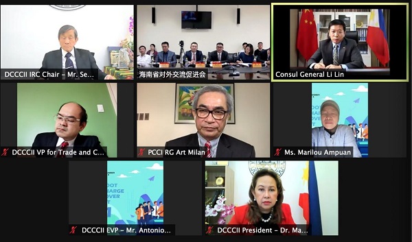 視頻連線截圖(中國駐達沃總領事館供圖) 東南網菲律賓7月17日訊 (本網特約記者 王丹丹)7月16日,海南省對外經濟合作交流促進會與菲律賓達沃市工商會在線上舉行,線上簽署戰(zhàn)略合作協議儀式暨兩地經貿合作研討會(以下簡稱“活動”)。中國駐達沃總領事館總領事黎林,海南省外事辦公室副主任王磊出席活動,菲律賓達沃市市長薩拉為該活動致賀信并派代表參會。 海南省對外經濟合作交流促進會(以下簡稱“海南經促會”)會長柯元枝,菲律賓第11區(qū)的教育、旅游、通信、工貿、工造等10個部門負責人,以及菲律賓達沃市政府部門官員、議員,菲律賓達沃工商會會長瑪露和國際關系委員會副會長林俊峰等雙方政府、企業(yè)有關人員近50人出席活動。 黎林簡要介紹了海南作為中國最大的自由貿易試驗區(qū)和自由貿易港以及達沃作為菲律賓人口第三大城市、面積第一大城市的基本情況。他表示,海南和達沃兩地的合作潛力無限。近年來海南、達沃兩地交流逐漸增加,在新冠肺炎疫情前,雙方有團組互訪,近期還實現了??诳缇畴娚坛隹诎鼨C首飛達沃。希望海南經促會和達沃工商會戰(zhàn)略合作協議的簽署能成為今后兩地經貿合作的重要平臺;雙方在會上開展的相關領域的研討能成為今后兩地擴大合作的重要起點。黎林表示,中國駐達沃總領館愿為兩地的友好交流與務實合作穿針引線。 王磊表示,中國與菲律賓擁有友好交往的傳統和悠久歷史,海南省與達沃市往來頻繁,特別是今年在博鰲亞洲論壇期間召開的中國東盟省市長對話會上,達沃市市長莎拉?杜特爾特以線上方式參加并作精彩發(fā)言,進一步深化了雙方交流。在介紹了海南自由貿易港建設取得的成就后,王磊希望雙方借簽約契機,加強多領域合作,提高雙方合作的層次和規(guī)模。 活動上,柯元枝和瑪露代表雙方簽署戰(zhàn)略合作協議,并在農林水產、能源基建、教育培訓、文化旅游及攜手抗疫等方面開展合作展開研討。 |