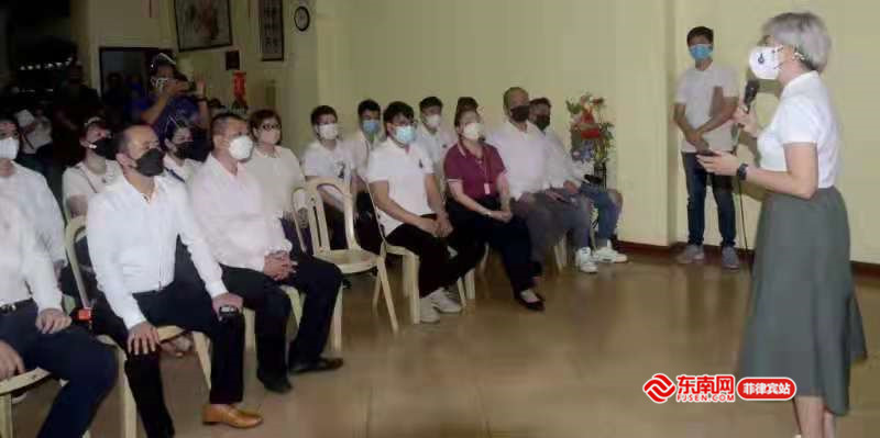 活動現場 馬尼拉副市長霍尼·拉庫納(Vice Mayor Honey Lacuna )在捐贈活動現場表示,大家在新冠肺炎疫情時期要注意安全,同心合力來對抗疫情。同時,她也代表當地市政府感謝商會同仁們的善舉。