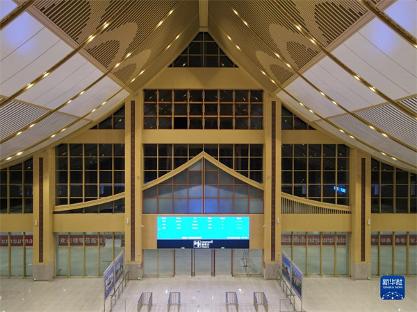 這是11月10日拍攝的中老鐵路瑯勃拉邦站。新華社發(中鐵建設供圖) 瑯勃拉邦站裝修具有濃郁地方特色,融入當地寺廟和王宮建筑、紋樣元素。項目部結合國內站房施工經驗,將中國傳統的門斗結構、特色窗花和老撾國花占芭花等元素巧妙運用到門柱、門梁及外立面幕墻施工,體現兩國美學文化。 中老鐵路是中國“一帶一路”倡議與老撾“變陸鎖國為陸聯國”戰略對接項目,全部采用中國管理標準和技術標準建設,設計時速160公里,為電氣化客貨混運鐵路。工程于2016年12月全面開工,計劃2021年12月建成通車。