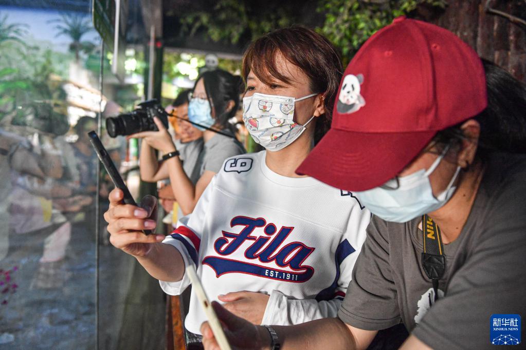 11月21日,在位于海口的海南熱帶野生動植物園,觀眾們在拍攝大熊貓。