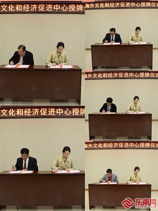 福州市人民政府僑務辦公室主任林峰與海外僑團代表簽定設立“海外文化和經濟促進中心”協議書