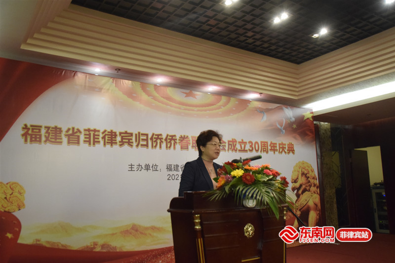 福建省僑聯副主席張瑤致辭 張瑤代表福建省僑聯向歸僑僑眷聯誼會成立30周年表示熱烈的祝賀。她說,歸僑僑眷聯誼會自成立以來,在歷任會長及各位同仁們的共同努力下,始終秉承創會初心,積極發揚承前啟后、薪火相傳的辦會精神,發展各項會務工作及活動,在促進中菲兩國民間友好往來等方面做出了應有的貢獻,廣受好評。此外,她還提出三點建議,一是歸僑僑眷聯誼會應當繼續弘揚并傳承不忘桑梓、愛國愛鄉的精神,團結在菲僑胞,推動聯誼會的會務工作再上新的臺階;二是向海外的中華兒女們宣傳推介新時代中國發展新形勢和當前福建發展機遇,在海外講好中國故事福建新篇章;三是加強與菲律賓當地各僑社間的交流往來,增強在菲僑胞對家鄉福建的鄉情凝聚力和自豪感。最后,她祝福慶典大會圓滿成功,祝大家身體健康、萬事順意!