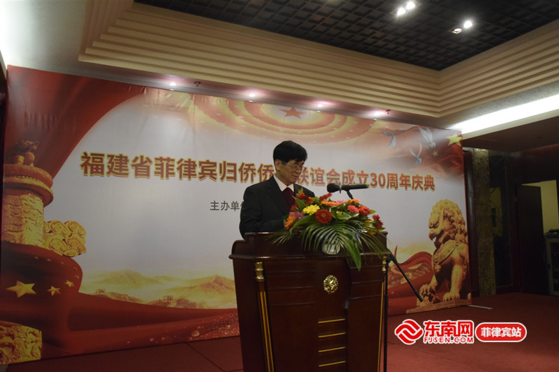 菲律賓歸僑僑眷聯誼會會長洪文比致歡迎詞 歸僑僑眷聯誼會會長洪文比致歡迎詞。他表示,十分高興和大家相聚在這一喜慶而又光榮的日子,歸僑僑眷聯誼會成立至今已有30年,屬于福建省僑聯團體會員單位之一,在此,他代表歸僑僑眷聯誼會全體同仁們向到場的來賓們致以最誠摯的問候。同時,他也向長期以來支持、指導和幫助會務開展工作的省僑聯領導、兄弟單位、共建工作單位及協作工作單位等表示衷心感謝。 菲律賓歸僑僑眷聯誼會副會長陳駿宣讀了中國駐菲律賓大使館及各華社發來的賀詞、賀電