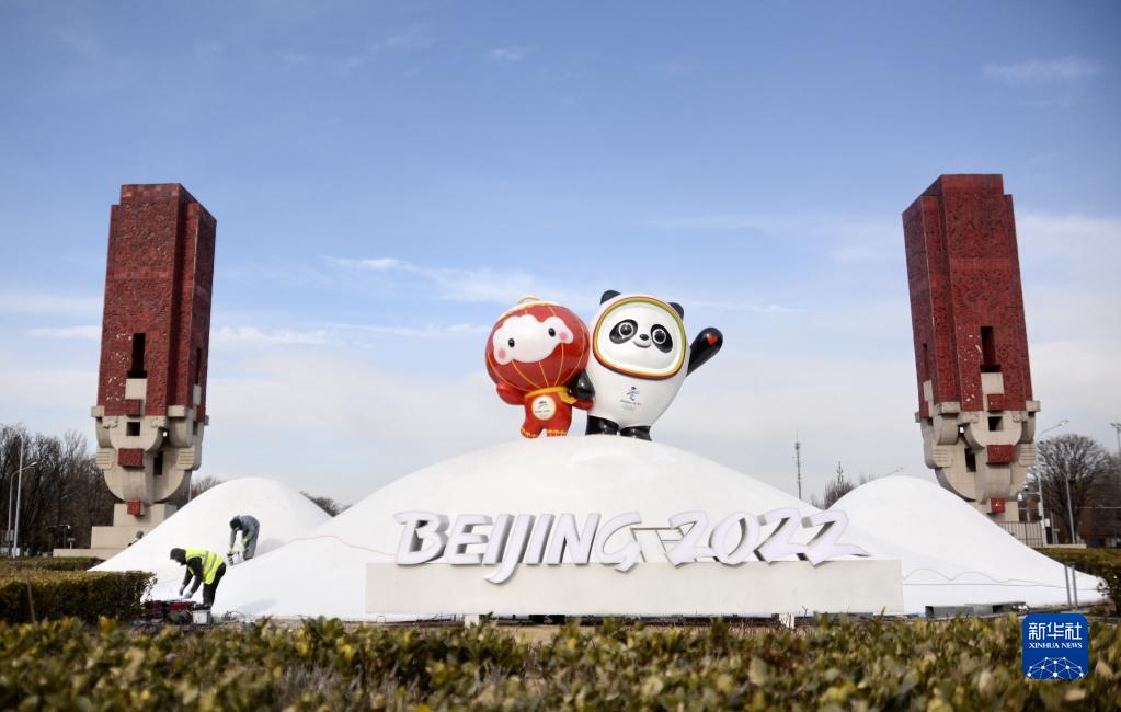 這是1月12日拍攝的即將完工的吉祥物“冰墩墩”和“雪容融”景觀。 約7.5米高的北京2022年冬奧會(huì)和冬殘奧會(huì)吉祥物“冰墩墩”“雪容融”日前在位于北京中軸線的奧林匹克景觀大道南端亮相?!氨斩铡焙汀把┤萑凇笨蓯鄣脑煨臀寺啡说哪抗?。 新華社記者 李欣 攝 |