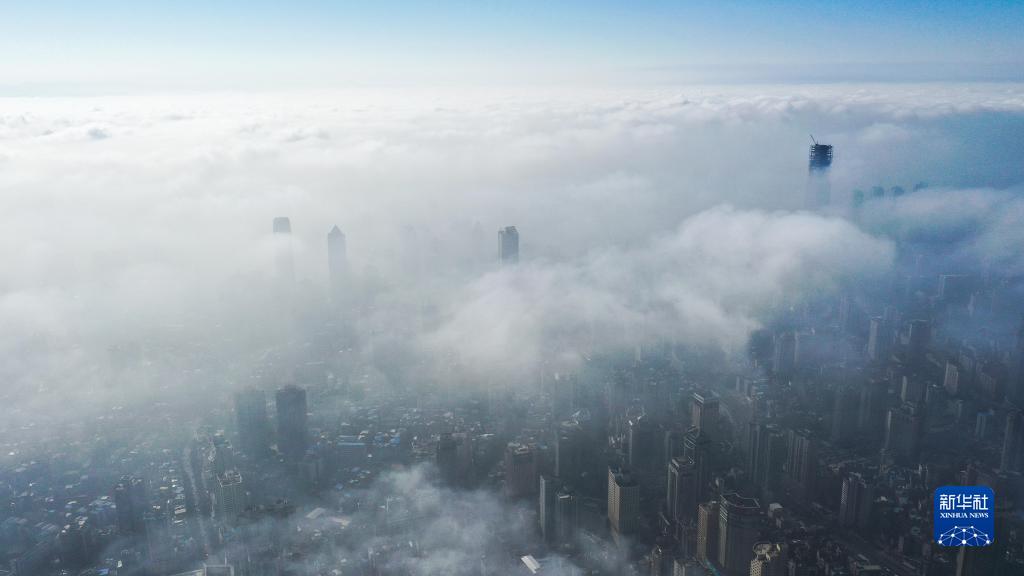 1月18日,貴州省貴陽市城區(qū)出現(xiàn)云海景觀,城市樓房及遠(yuǎn)山在云海中若隱若現(xiàn),引人入勝(無人機(jī)照片)。
