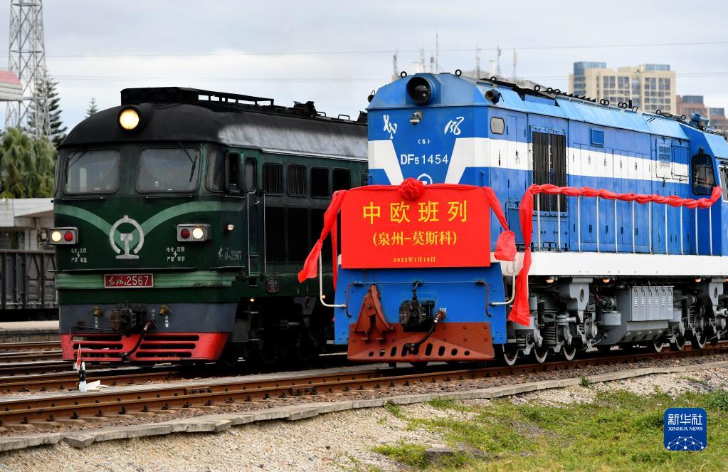 當日上午,載有衛生用品、箱包、鞋服及工藝品等貨品的中歐班列從泉州東站緩緩駛出,標志著“海絲”起點泉州首次開行中歐班列。