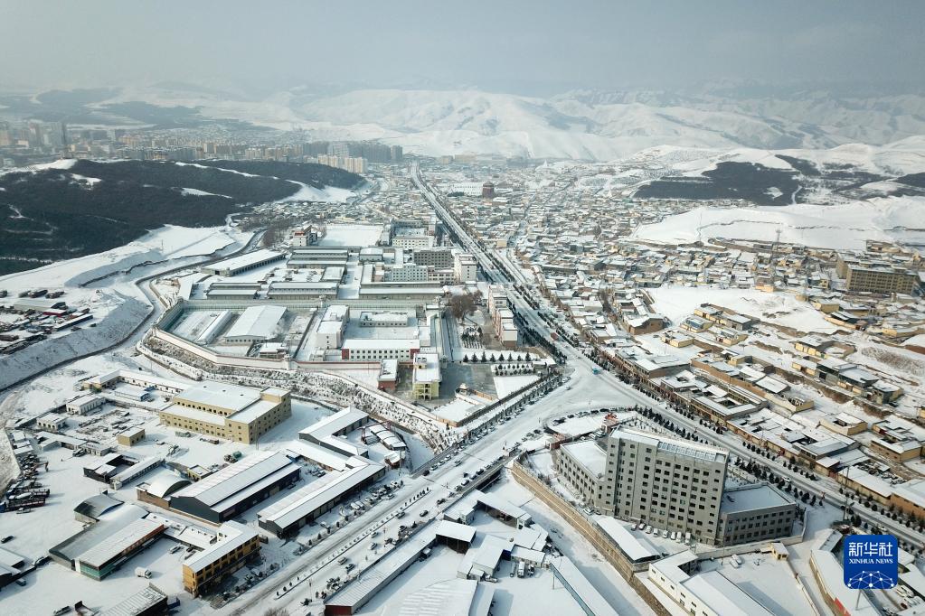 近日,受較強冷空氣影響,甘肅省甘南藏族自治州合作市普降中雪,局地大雪,城市內建筑、道路、村莊被白雪覆蓋,銀裝素裹。