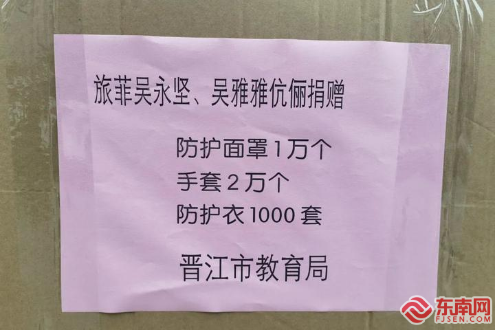 東南網(wǎng)3月25日訊(本網(wǎng)特約記者 洪賓賓 文/圖)為支援家鄉(xiāng)泉州抗疫,助力疫情防控,近日,菲律賓福建青年聯(lián)合會(huì)(下簡(jiǎn)稱“青聯(lián)會(huì)”)一行在晉江市西吳村遠(yuǎn)順拉鏈廠內(nèi)向當(dāng)?shù)卣栀?zèng)一批防疫物資,其中包括面罩、手套、防護(hù)衣等,該批物資將用于援助晉江市教育局抗疫。